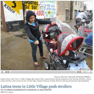 Latina teens in Little Village push strollers (Medill Reports Chicago; December 7, 2010)